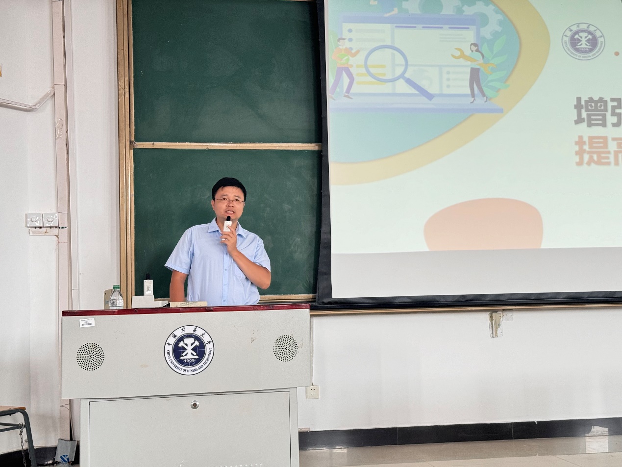 瞿望老师则围绕“安全概述、消防安全、交通安全、人身财产安全”四大板块,为新生们上了一堂生动的校园安全教育课。他运用大量实际案例和现场安全检查中发现的隐患照片,直观展示了校园安全的重要性,特别是宿舍安全管理的关键环节。他强调,安全无小事,每位同学都应成为自己安全的第一责任人,严格遵守校园安全管理规定,掌握必要的应急处理技能,共同营造一个安全、和谐的校园环境。
