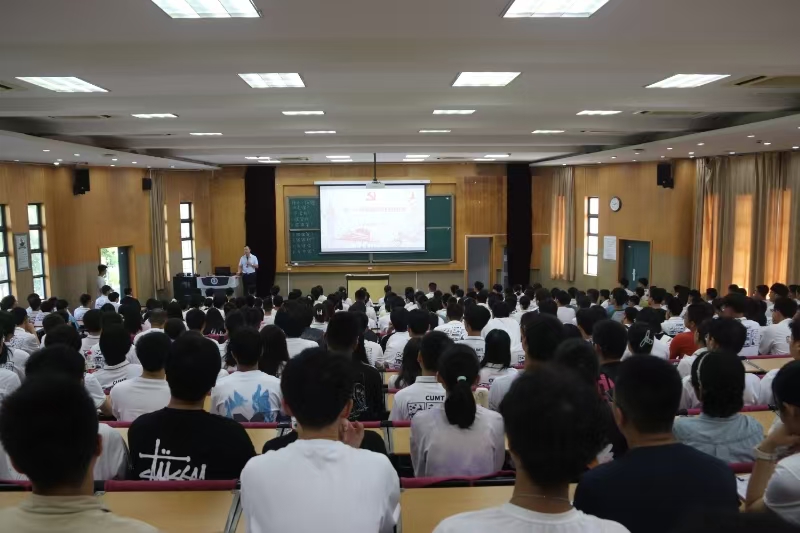 9月4日上午,材物学院在南湖招聘大厅举行以“做一个有家国情怀的担当者”为主题的2024级新生入党启蒙教育。活动由学院党委副书记纪承主讲,全体2024级本科生参加。