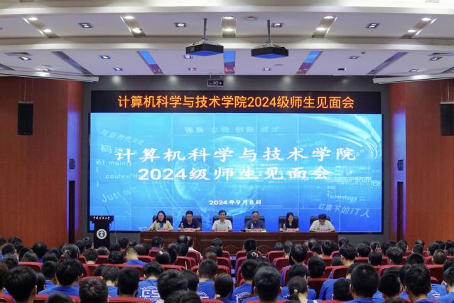 9月4日下午,计算机学院举行2024级本科生师生见面会暨学籍学纪教育大会。学院党委书记周治国,院长周勇,党委副书记王梦倩,副院长牛强、陈朋朋、李卿,学院研究生导师代表,各系部支部书记、主任,机关各科室负责人,各年级辅导员、新生班主任及2024级全体本科新生参加会议。会议由王梦倩主持。