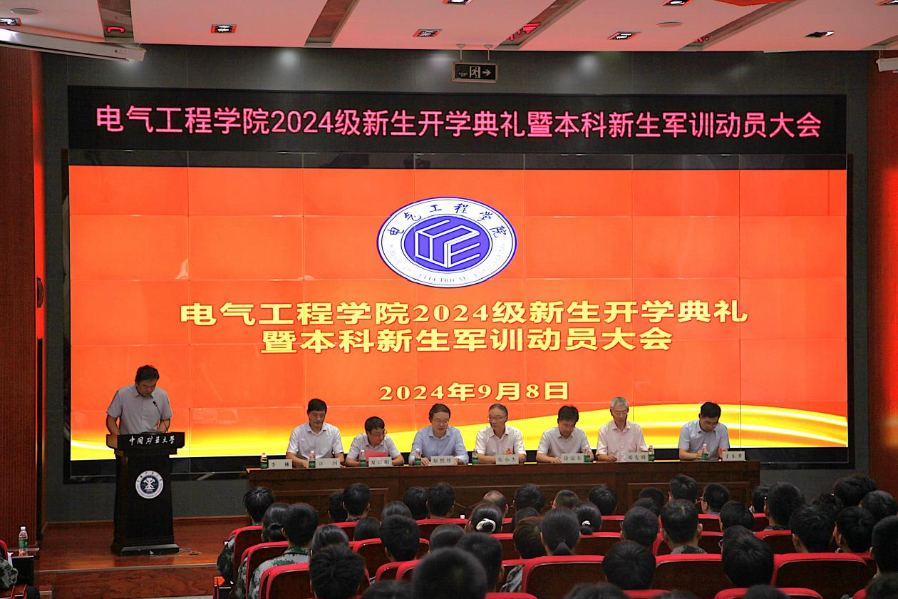 9月8日上午,电气学院在信电楼A101报告厅举行2024级新生开学典礼暨本科新生军训动员大会。院党委书记伍小杰,院长原熙博,副院长徐瑞东、江国、夏晨阳,专业负责人邓先明,电力电子与电机系系主任于东升,全体辅导员、新生班主任,全院282名本科新生与部分研究生新生代表共同出席典礼。院党委副书记李林主持典礼。