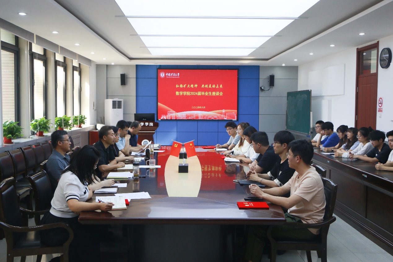 6月7日下午,数学学院召开2024届毕业生座谈会。数学学院党委书记戎辉、党委副书记程婷婷,副院长张慧星、张庆春,党政办公室主任韩超、教学办公室主任项树林、研究生与科研办公室主任张译文、专职辅导员郑硕,2024届毕业生代表参加座谈会。座谈会由学生工作办公室主任、毕业年级辅导员卫慧芳主持。