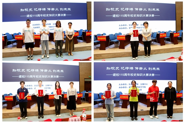 5月22日下午,“知校史 忆峥嵘 传薪火 创未来”建校115周年校史知识大赛在图书馆报告厅落下帷幕。党委宣传部、校团委、党委学生工作部、教务部、研究生院、档案馆、资源与地球科学学院等单位负责人出席决赛现场。