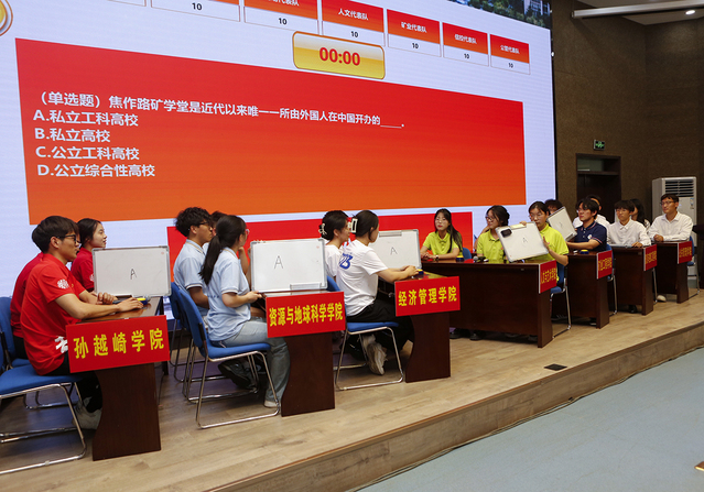经过激烈比拼,低碳能源与动力工程学院代表队获得特等奖和“校史知识大赛总冠军”称号,经济管理学院代表队获得一等奖,公共管理学院代表队、信息与控制工程学院代表队、矿业工程学院代表队获得二等奖,资源与地球科学学院代表队、人文与艺术学院代表队、孙越崎学院代表队获得三等奖。