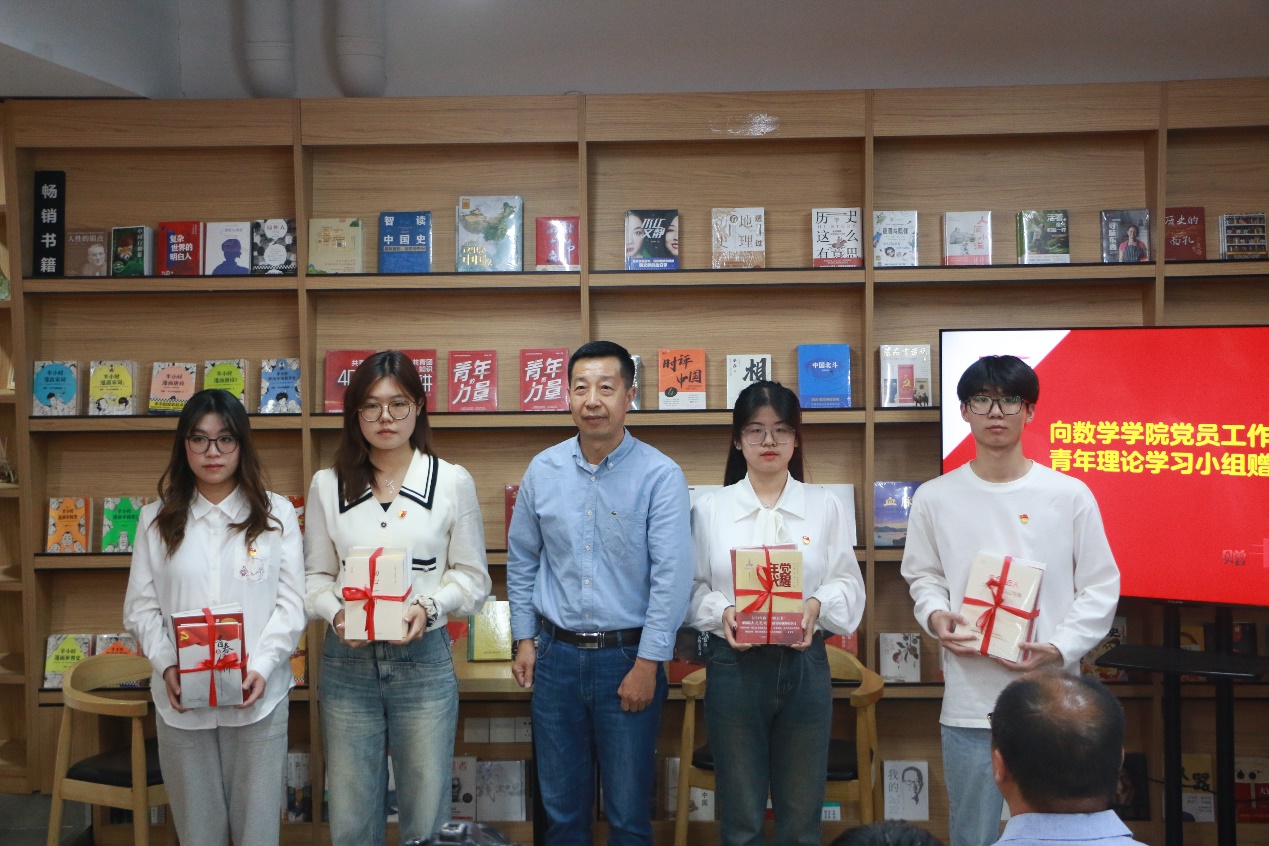 活动现场,与会人员一起观看了微纪录片《新中国第一本数学手册的故事》,校出版社为数学学院党员工作站青年理论学习小组捐赠书籍。