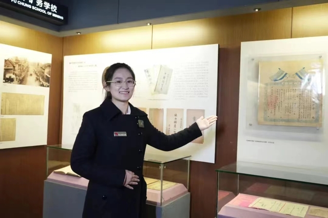 在学校本科教育教学审核评估期间,为服务专家组到校史馆考察工作,宋梦阳努力克服时间紧张等种种困难,利用课余时间进行前期准备工作,反复练习讲解内容,协助老师精心设计讲解路线,献出了自己的一份力量。在讲解实践中,宋梦阳逐渐提升了语言表达能力,结识了很多优秀的朋友,收获了自信与从容,也更加擅长沟通交流和处理问题。同时,她深刻体悟到,矿大百年历史倏忽而过,变的是时间与校址,不变的是精神与传承,真诚地希望能通过自己的讲解将矿大故事与精神火炬继续传递下去!