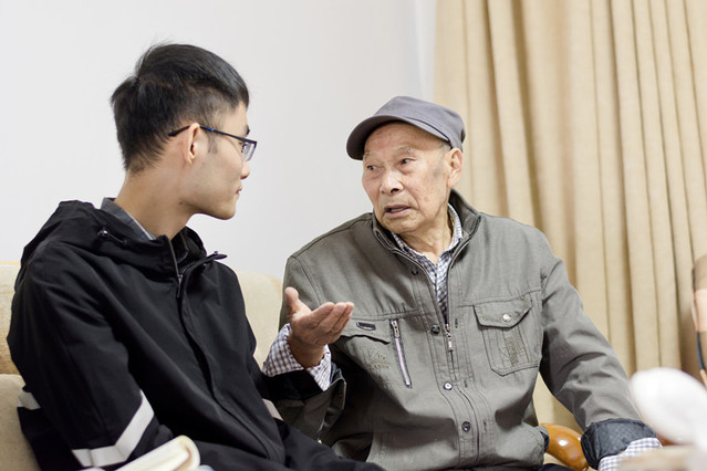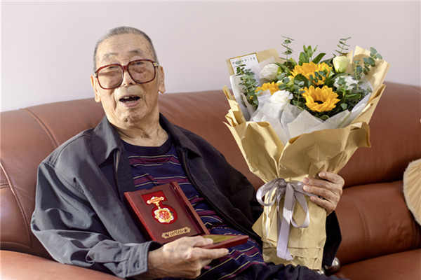 在祖兴荣的家中,有两面鲜艳的小红旗紧紧依偎着一台老式电视机。96岁高龄的祖老丝毫不减年轻时的飒爽与挺拔,他挺直了腰身,“我们老两口每晚七点都准时收看新闻联播,关注时政热点。”