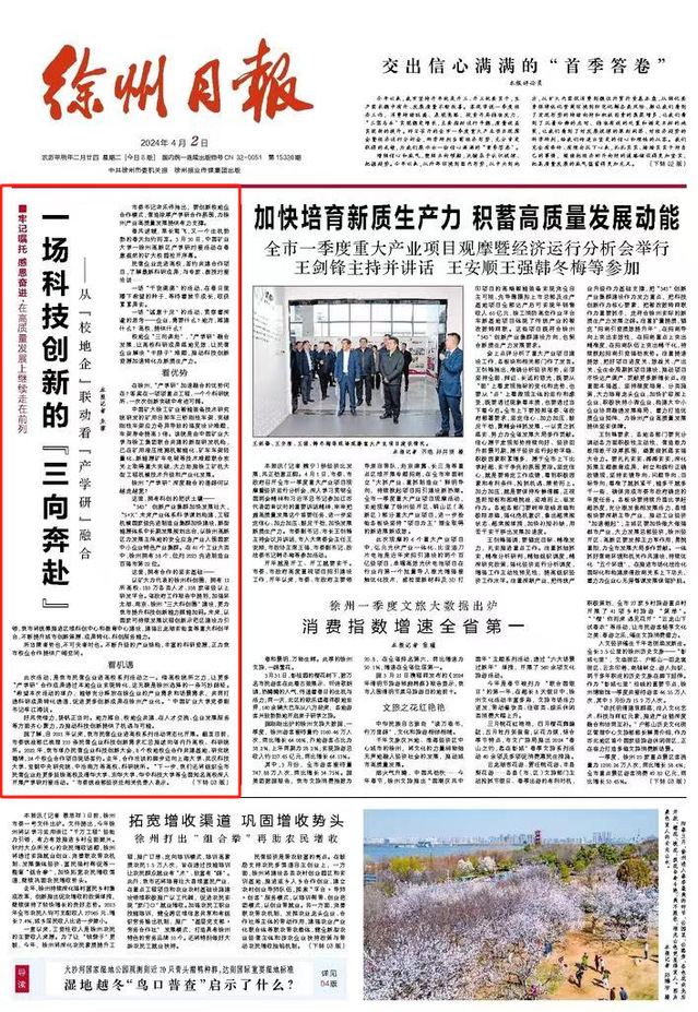 市委书记宋乐伟指出,要创新校地企合作模式,营造浓厚产学研合作氛围,为徐州产业高质量发展提供有力支撑。