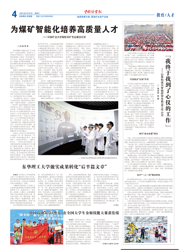 随着6月份第三届智能采矿班38名同学毕业,该校已经培养了270多名智能采矿专业人才。“作为当今全国唯一以矿业命名的特色鲜明高水平大学,学校把握行业发展新趋势,始终与行业同频共振。”中国矿业大学党委书记刘波表示,学校将继续面向国家战略需求和行业发展需要,发挥学科特色优势,高质量建设智能采矿、应急管理等新专业,培养更多能够引领行业发展的栋梁之材。