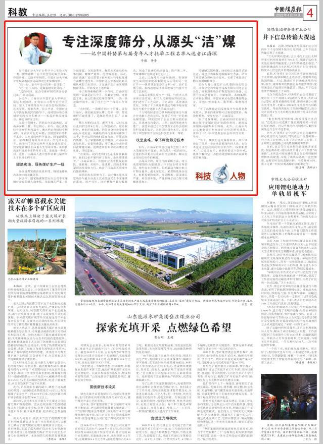 江海深长期扎根生产一线,与技术人员深夜讨论方案,和工人兄弟现场并肩作战。他们进行了工艺设计、工业试验、系统调试优化,实现了千万吨级粘湿动力煤多级深度筛分与重介分选新工艺的成功运行。